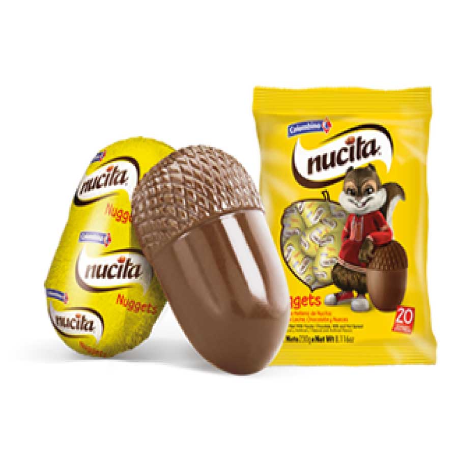 CHOCOLATE RELLENO DE NUCITA : CREMA DE LECHE, CHOCOLATE Y NUECES, X12 UNIDADES