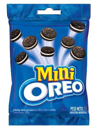 MINI GALLETAS DULCES SABOR A CHOCOLATE RELLENAS DE CREMA SABOR A VAINILLA. PVP : 0.50 CENTAVOS