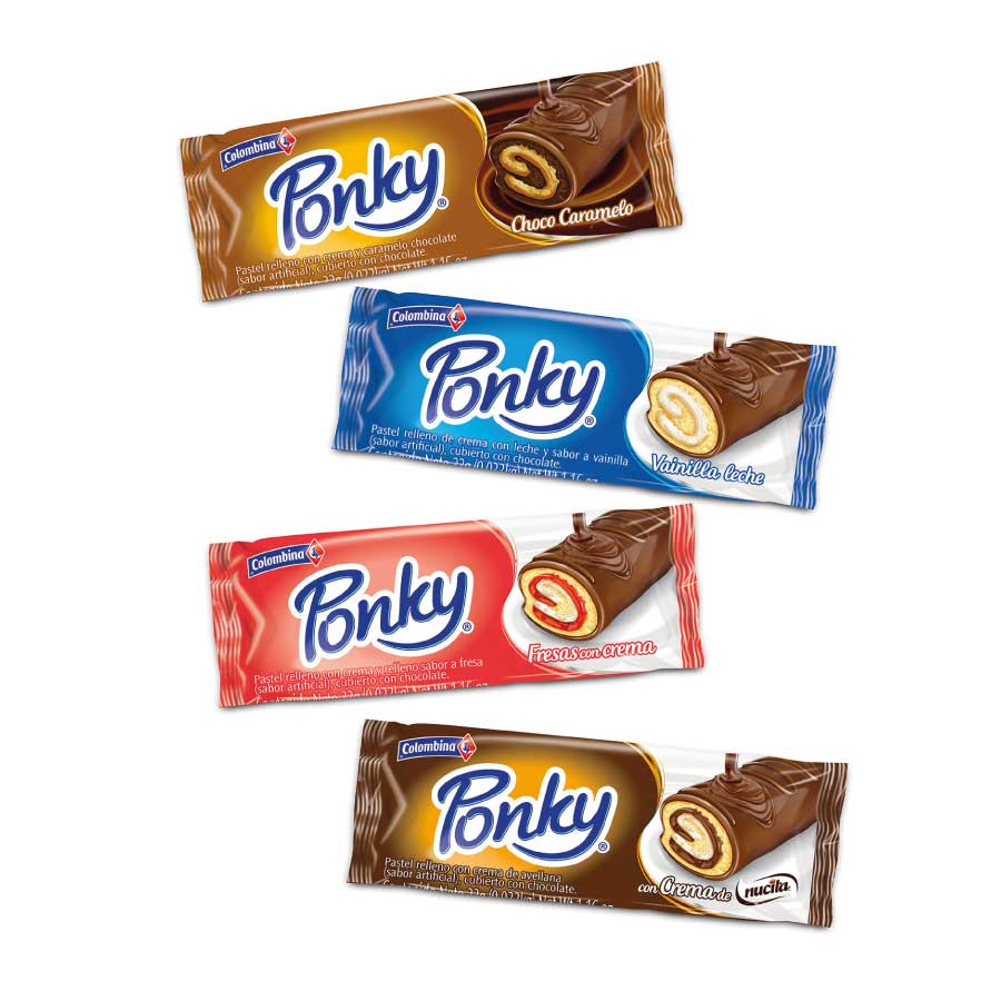 TIRA DE PONKYS 8 UNIDADES SABORES SURTIDOS : FRESA CON CREMA, VAINILLA, Y CHOCO CARAMELO